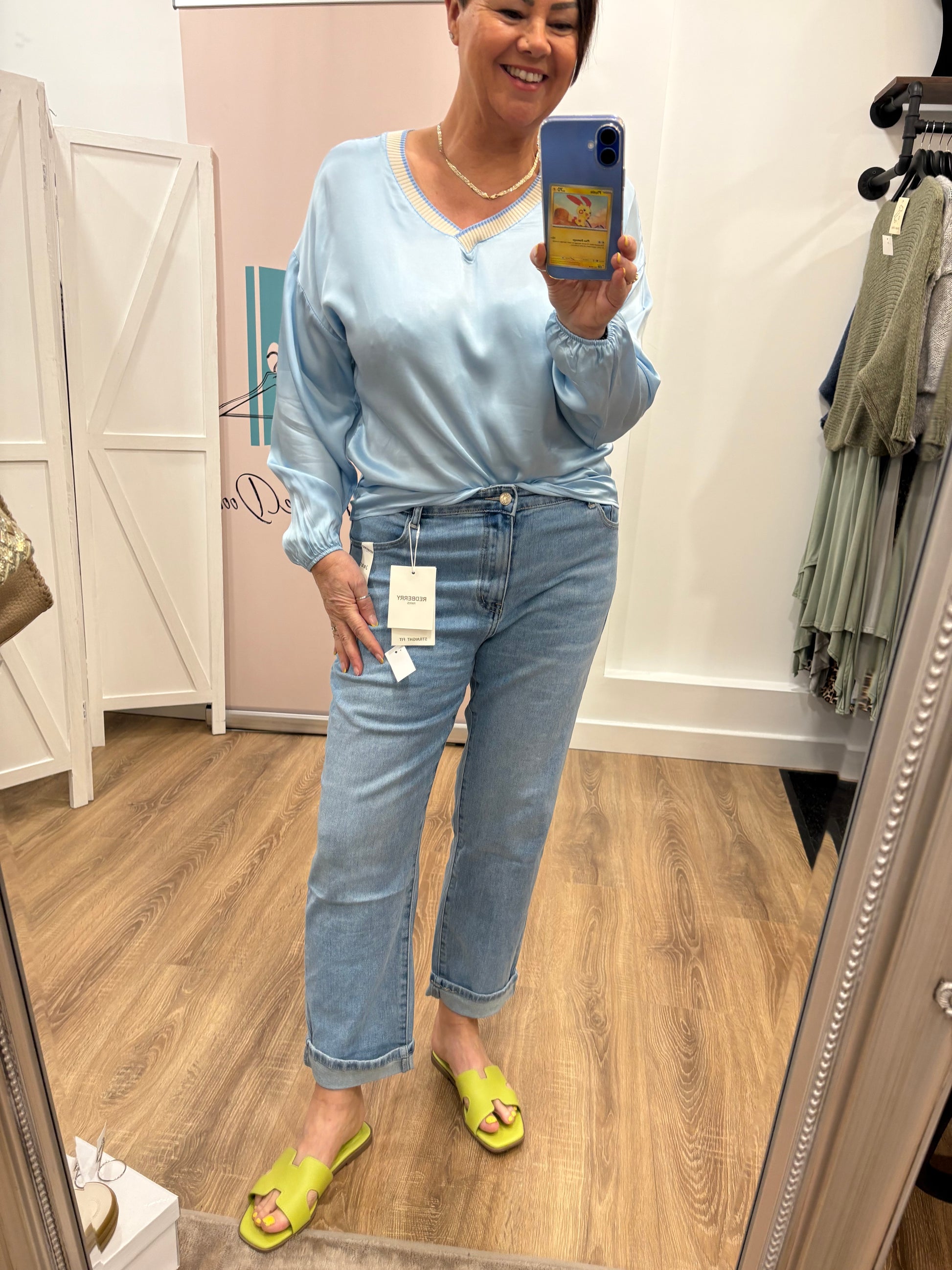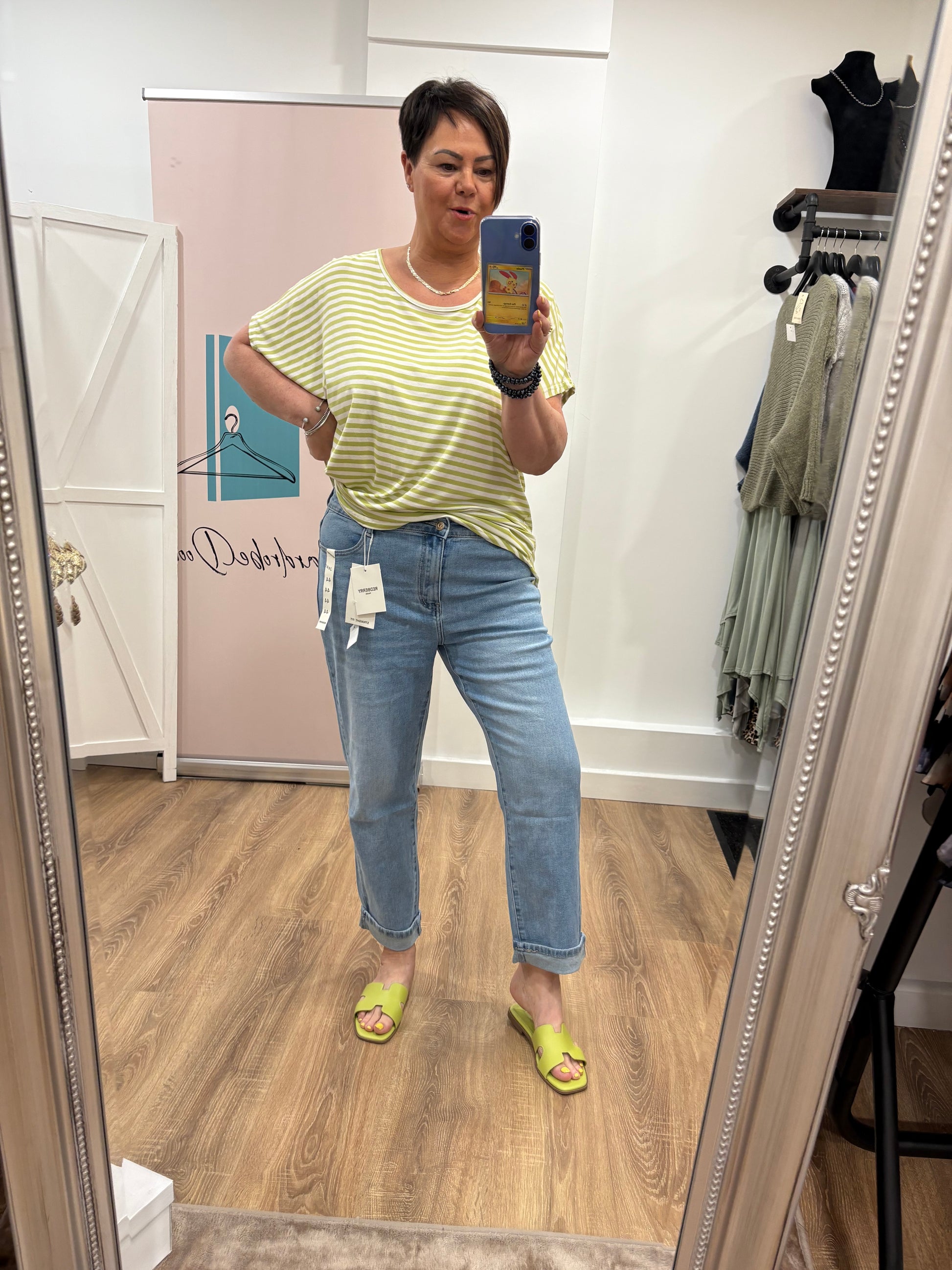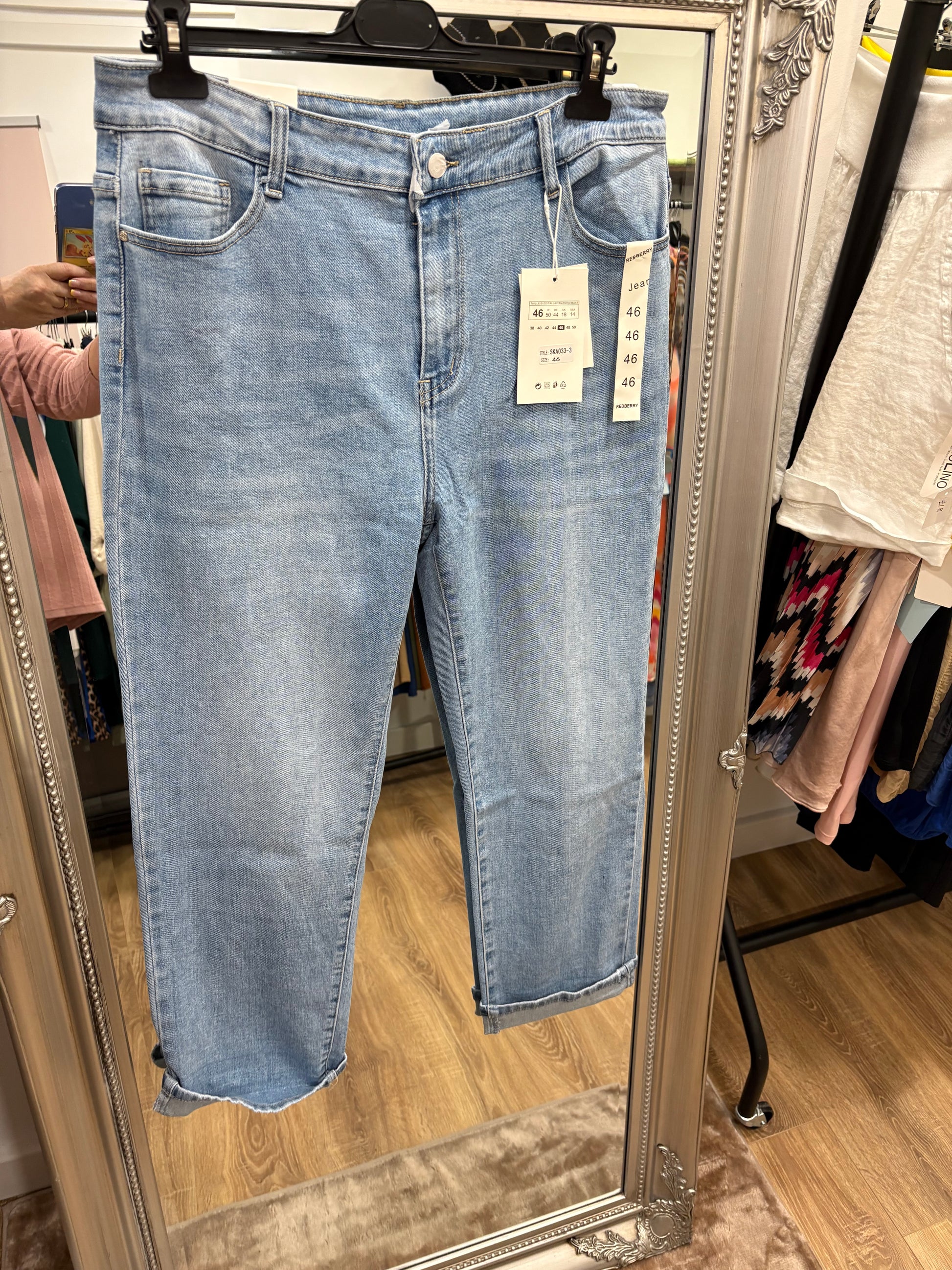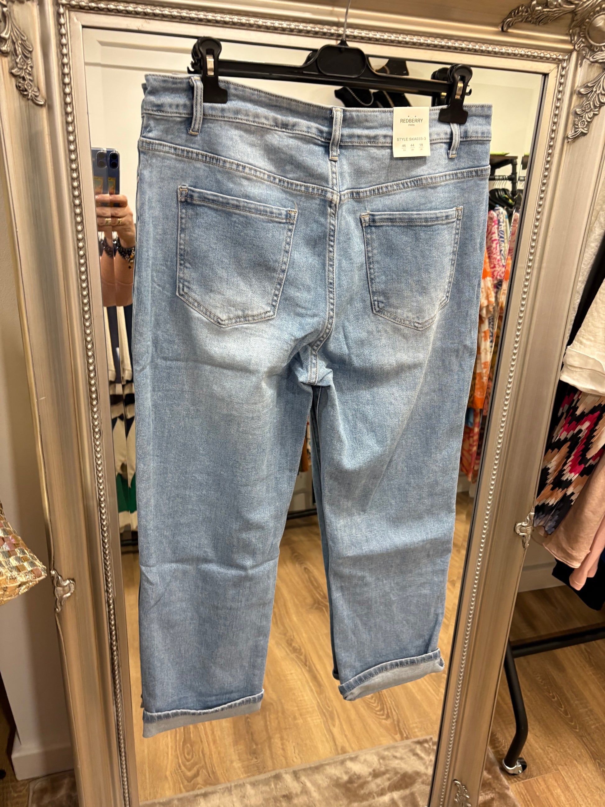 Cropped, Turn up, Stretch, Straight Leg Jeans.