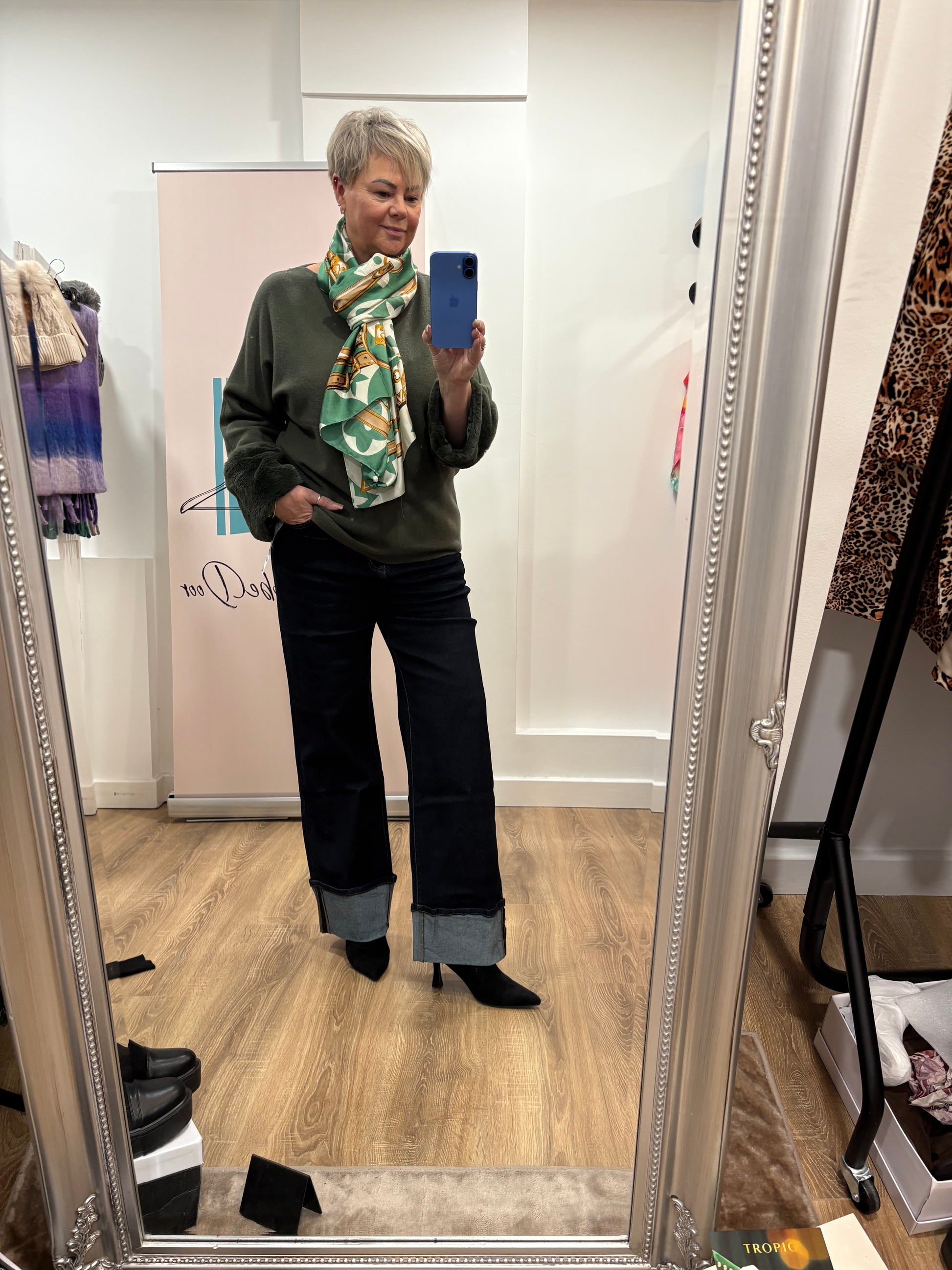 Wide leg with deep turnup.