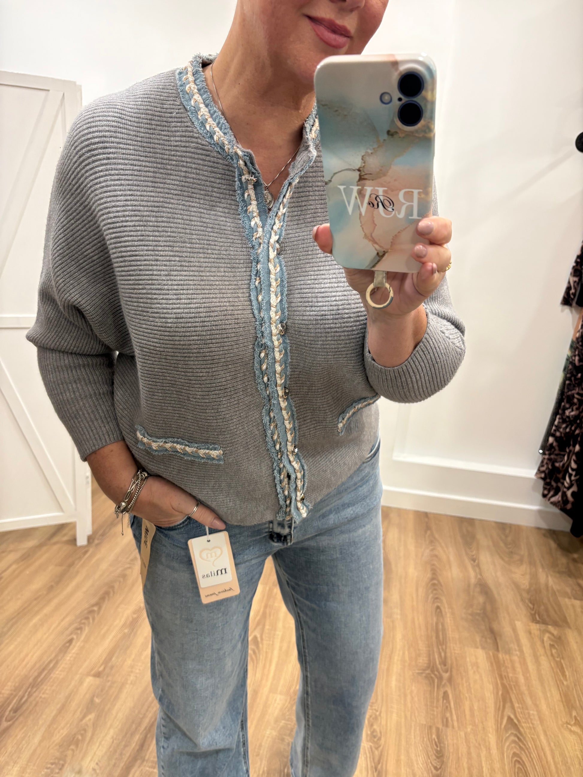 Denim Trim Button Jumper