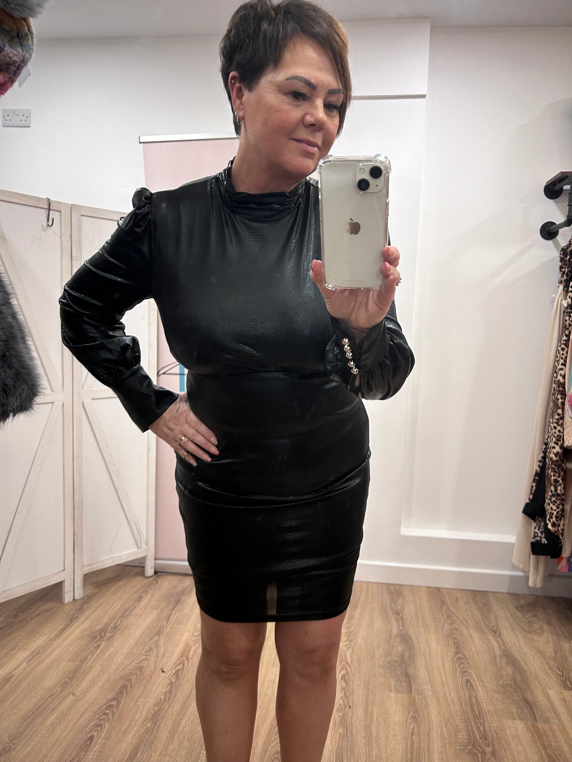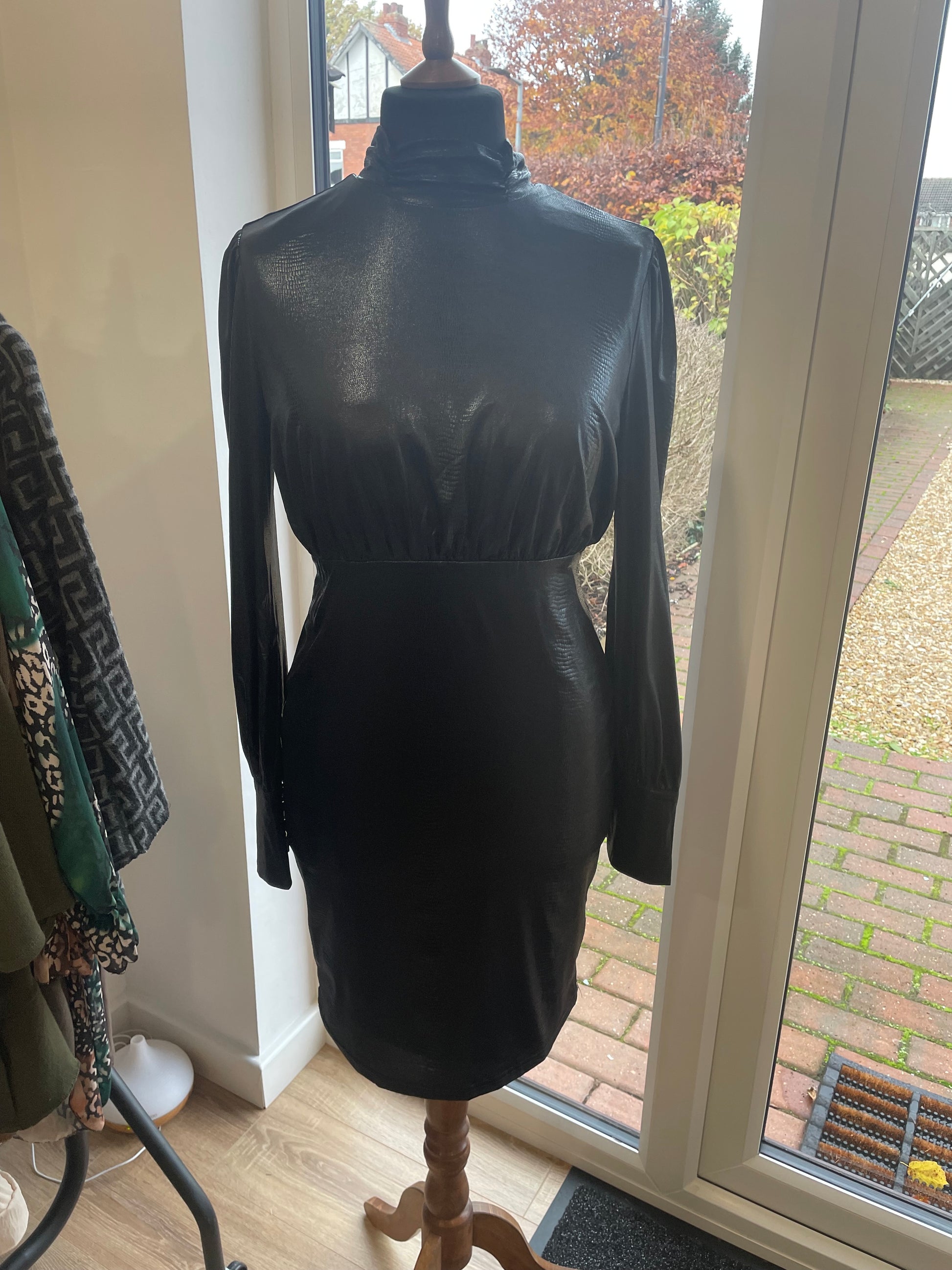 High Neck Shimmer Mini Dress.