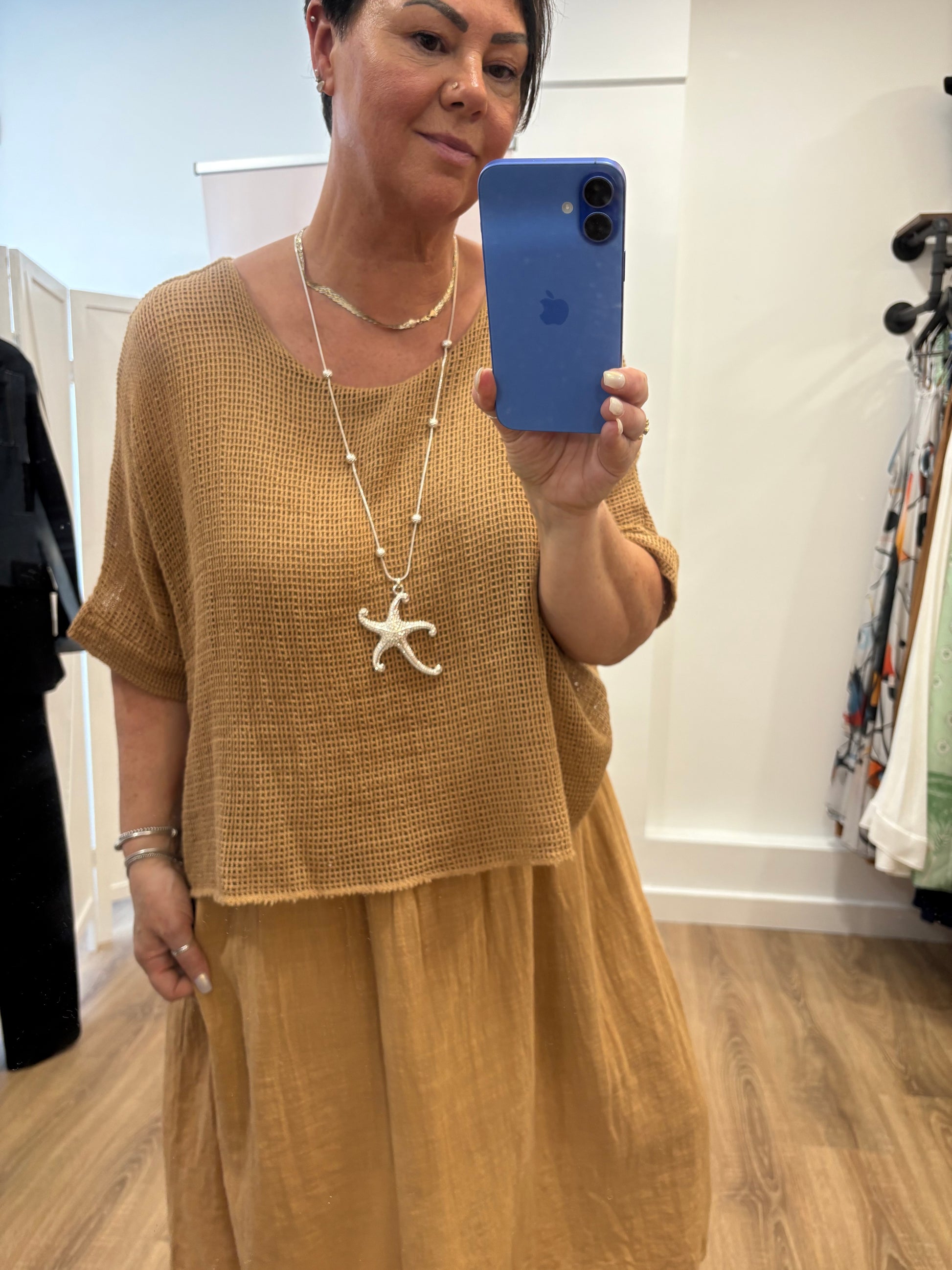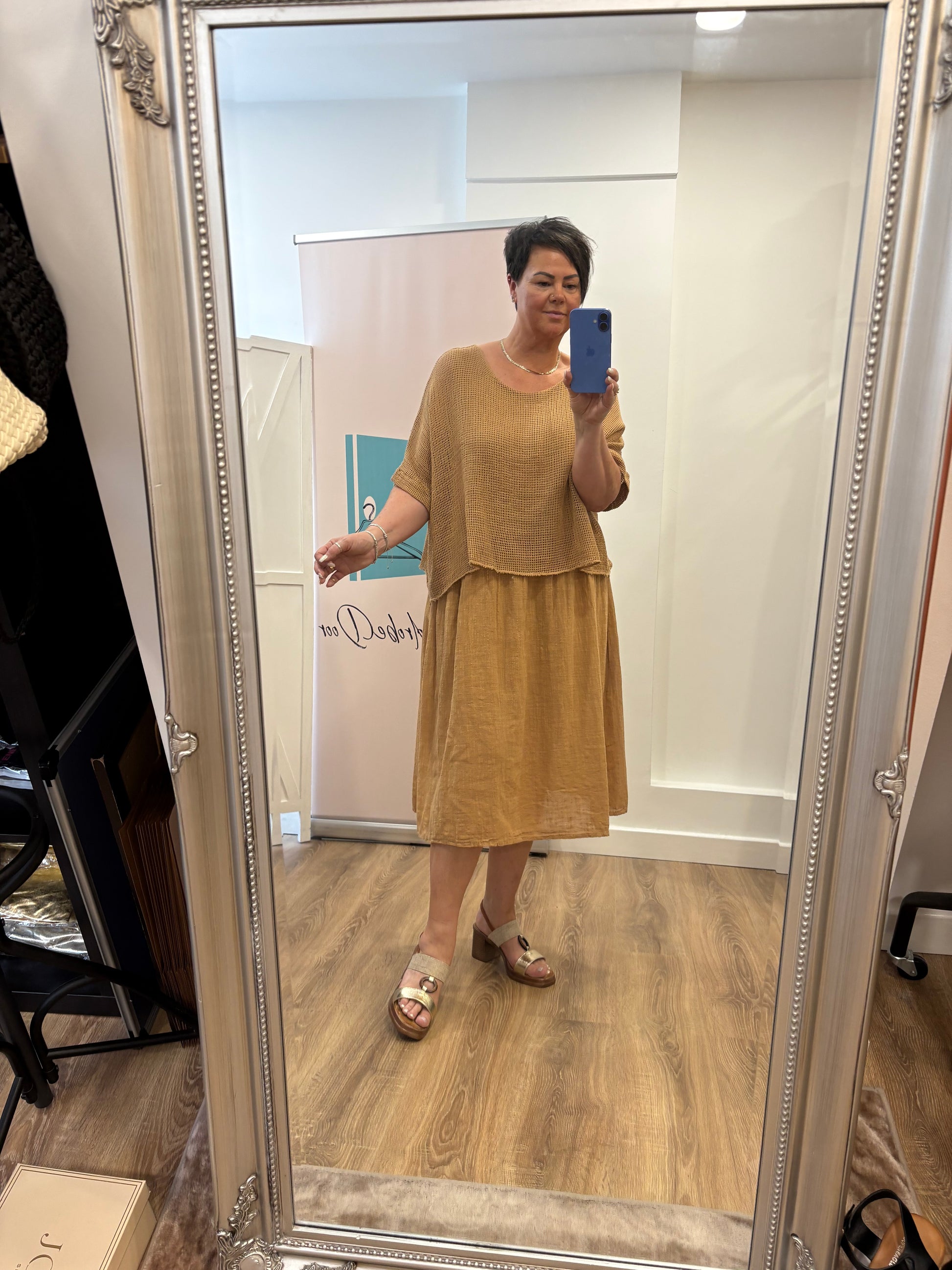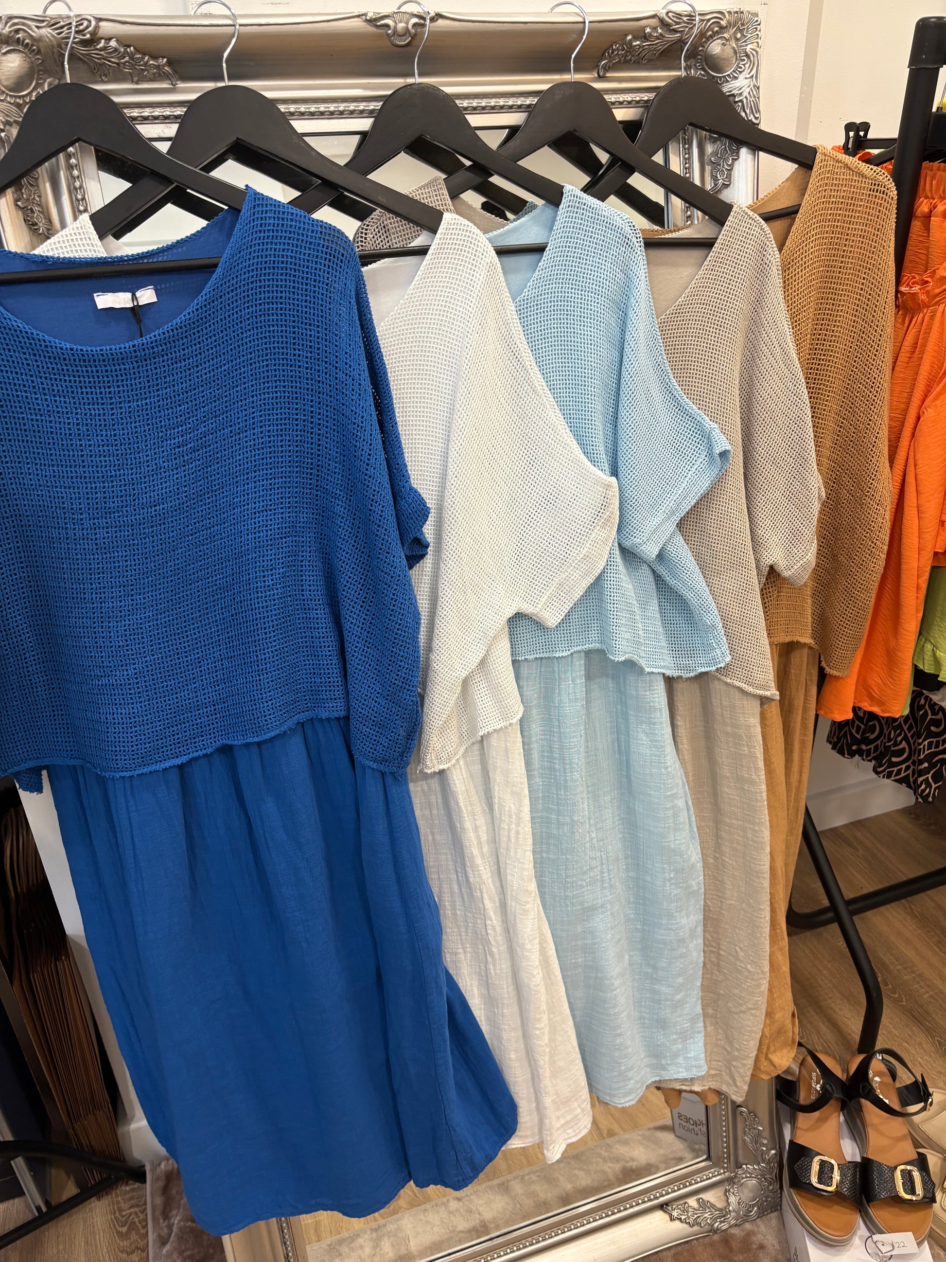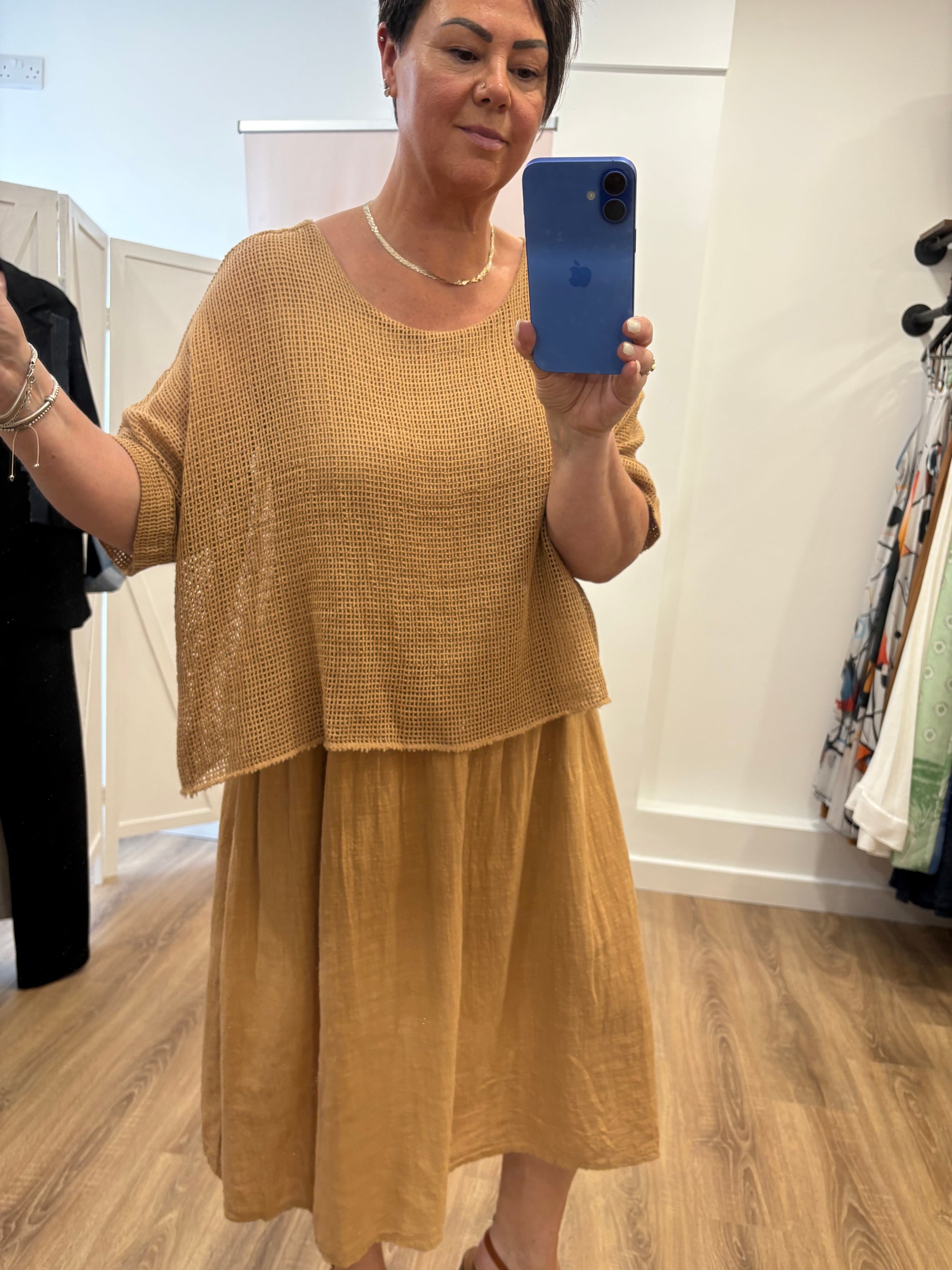 stretch t-shirt material vest underneath the netted t shirt over top.