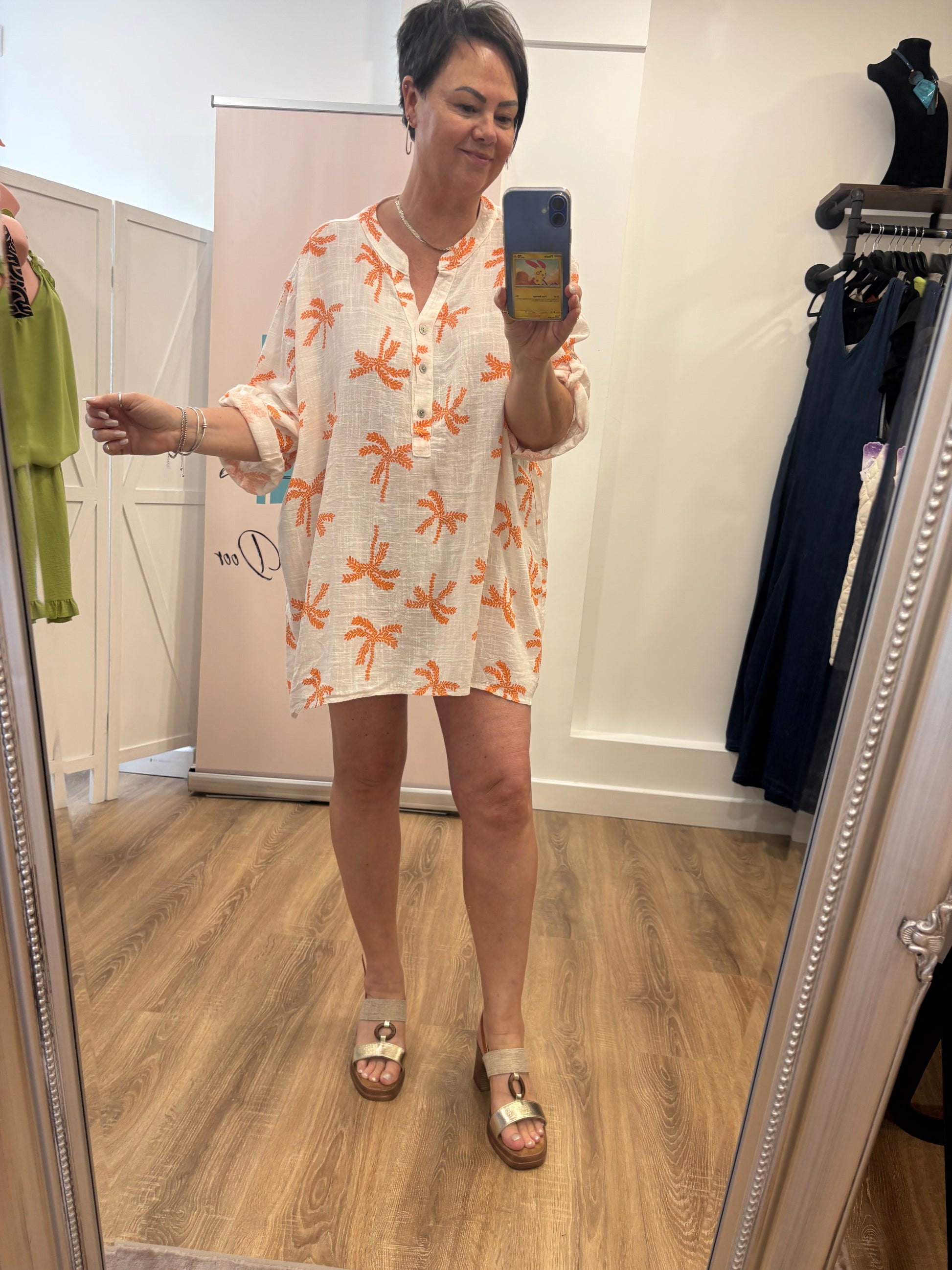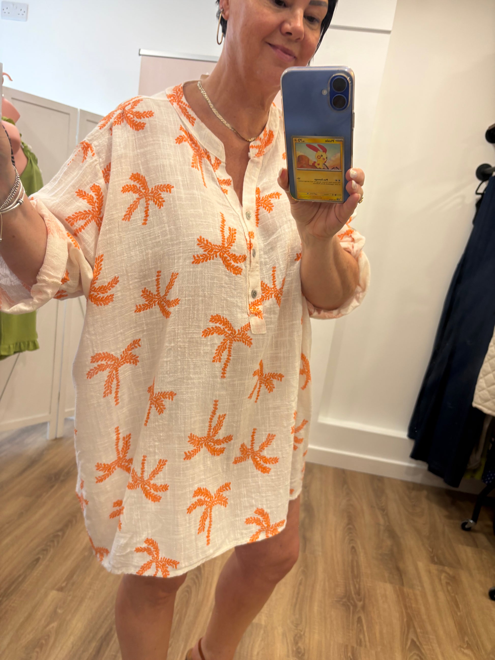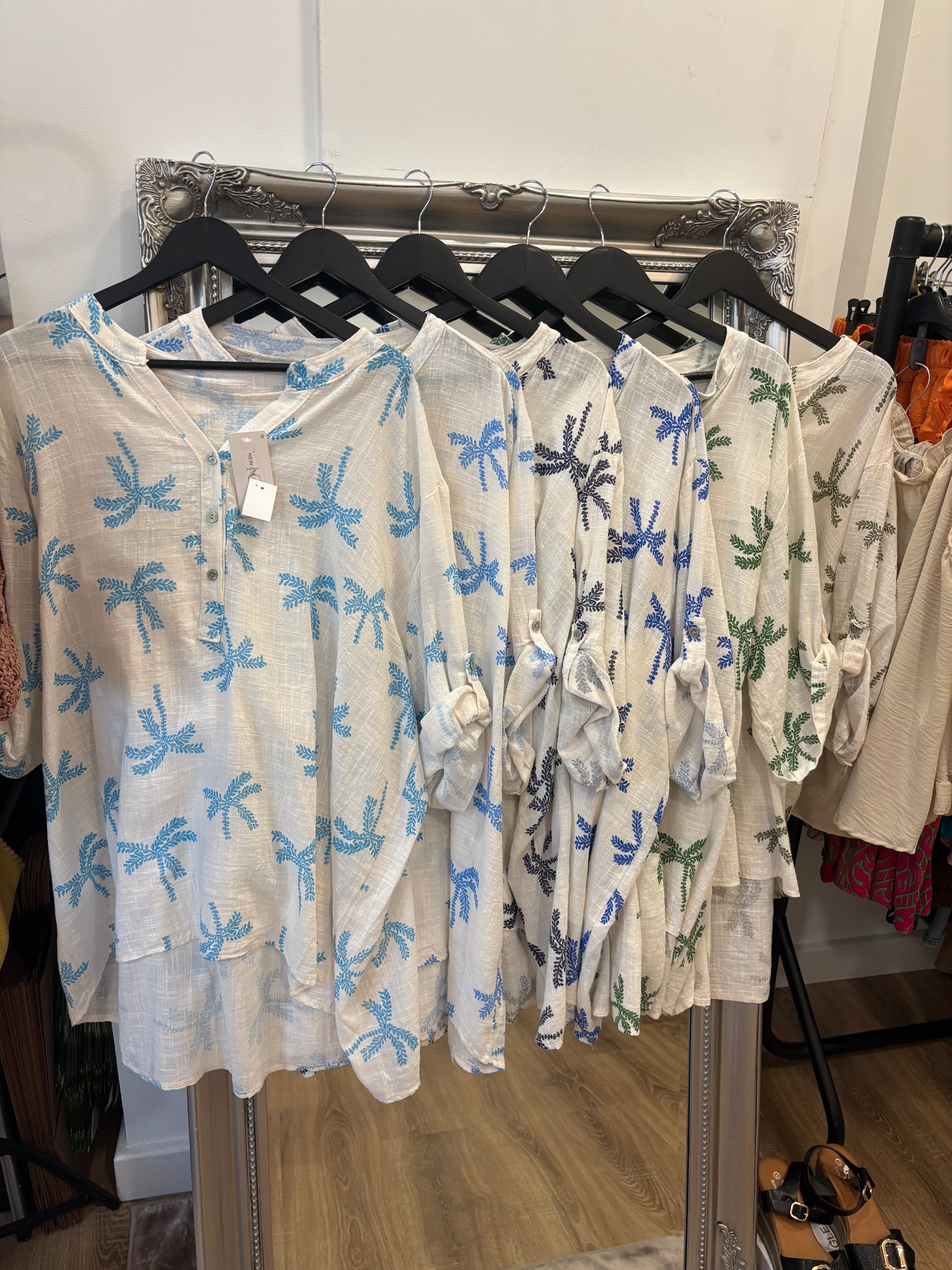 Palm Tree Cotton Grandad Shirt