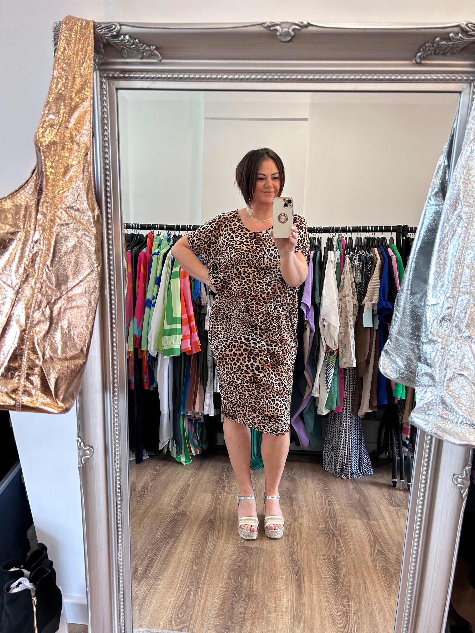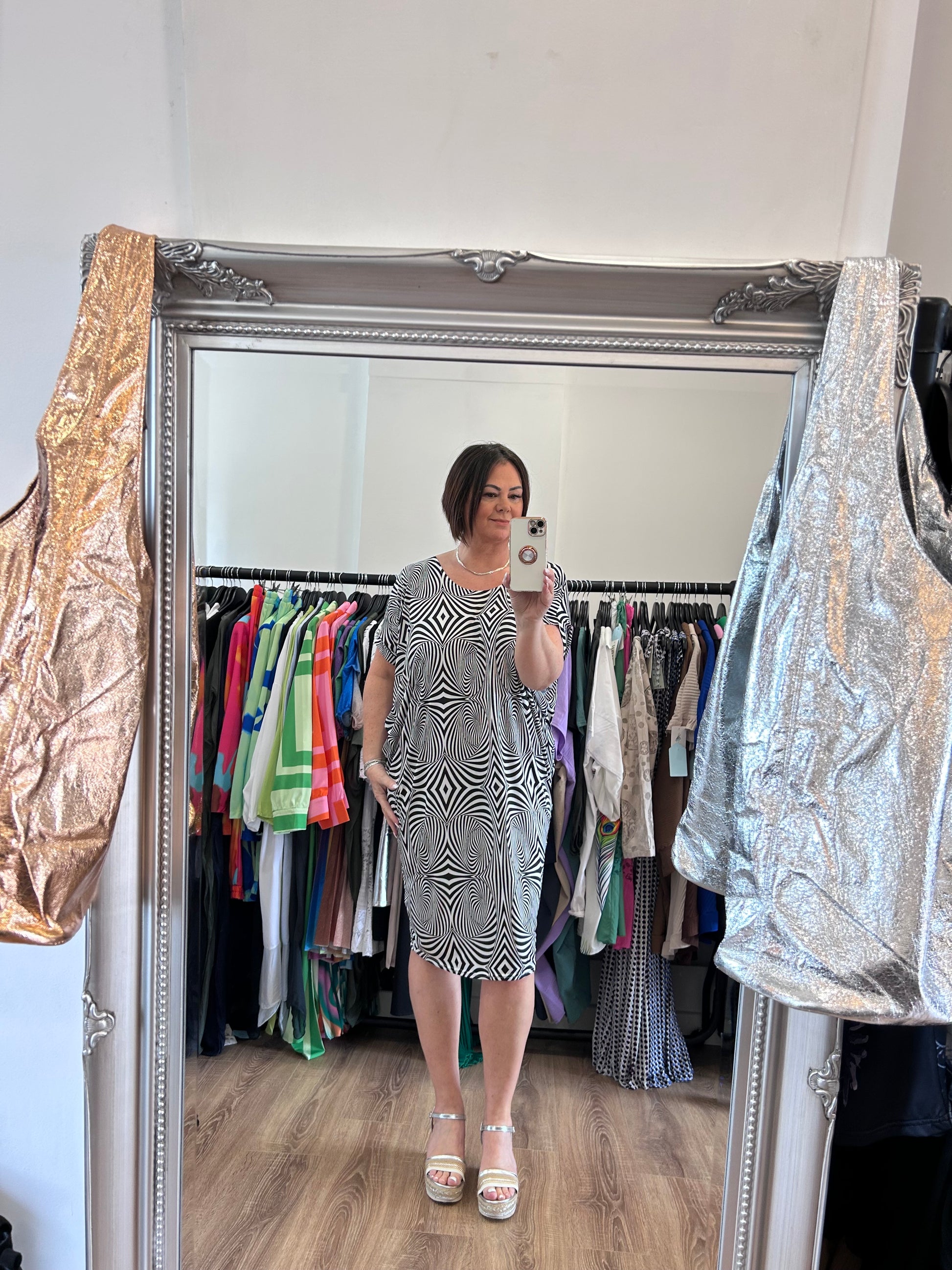 Pattern Round Neck Drape Dress.