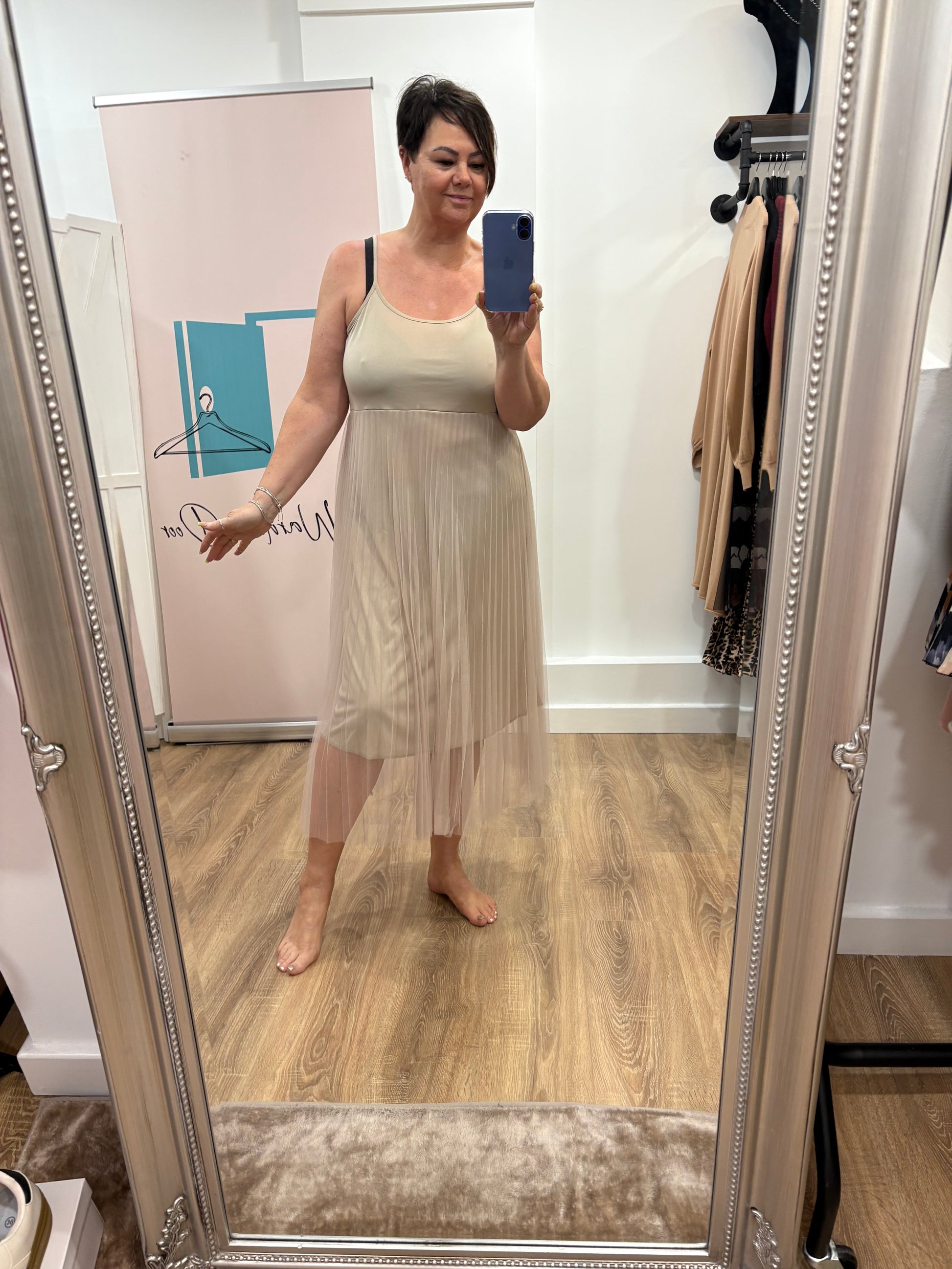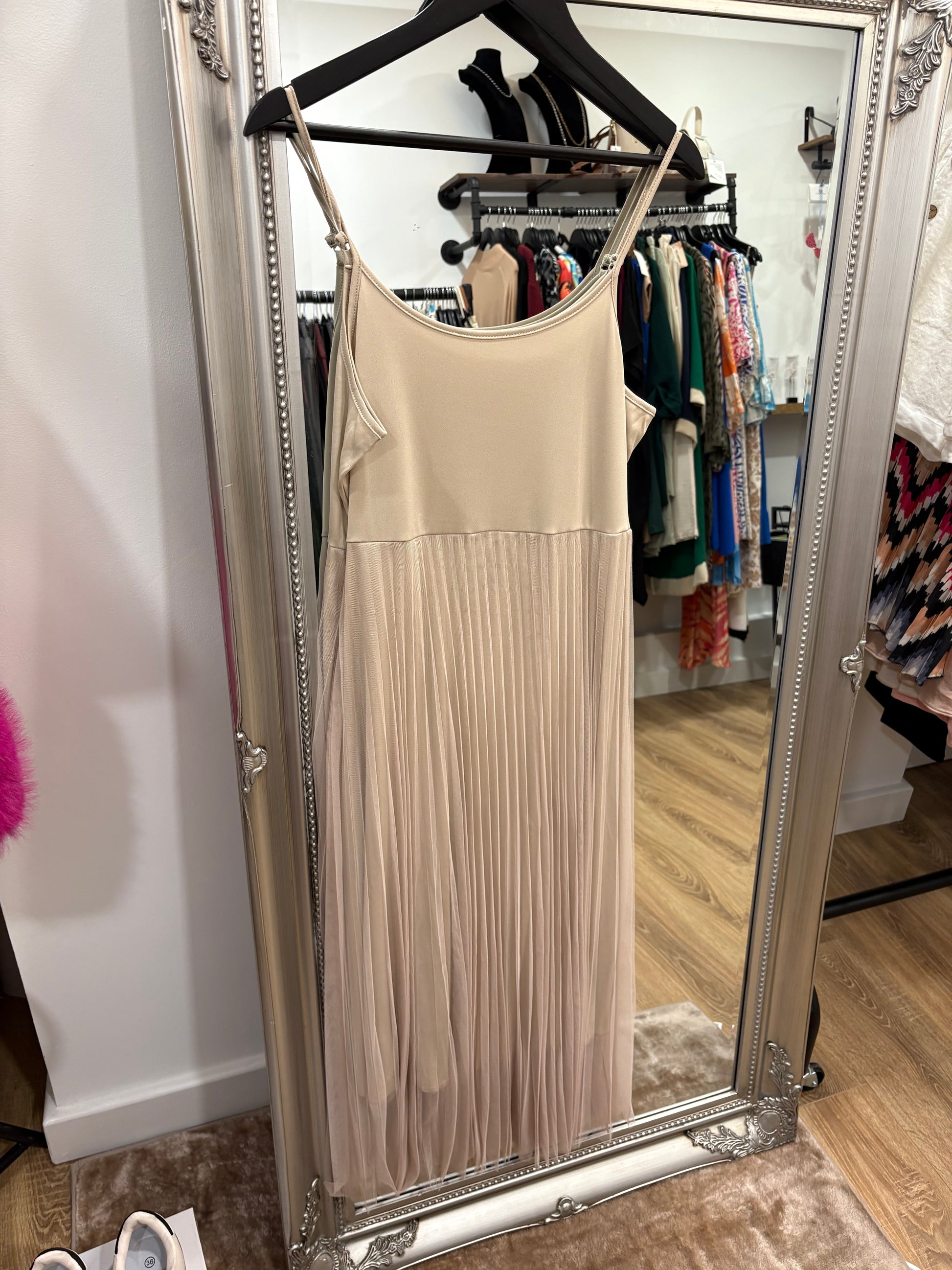 Pleated Net Dress with Overtop