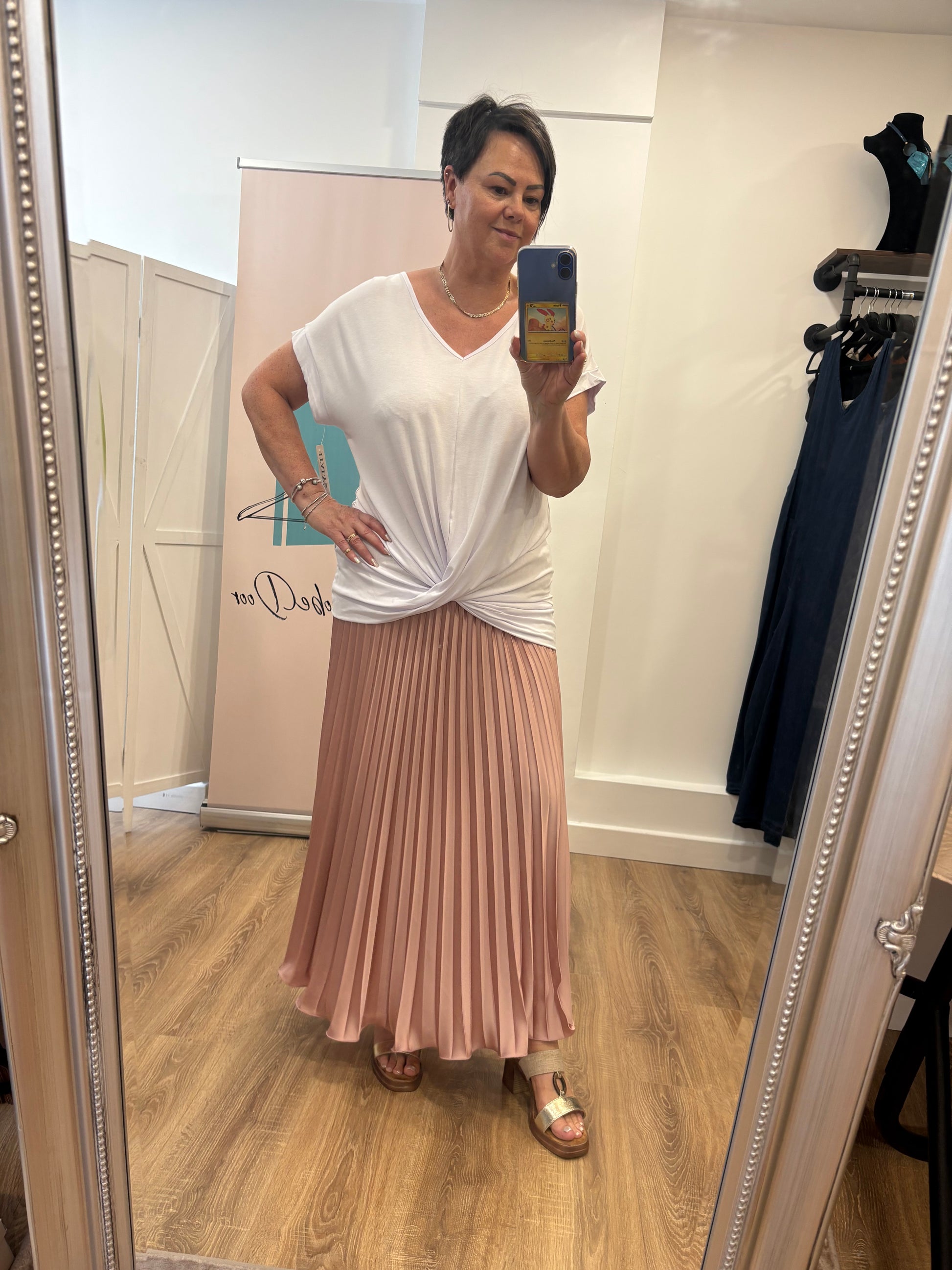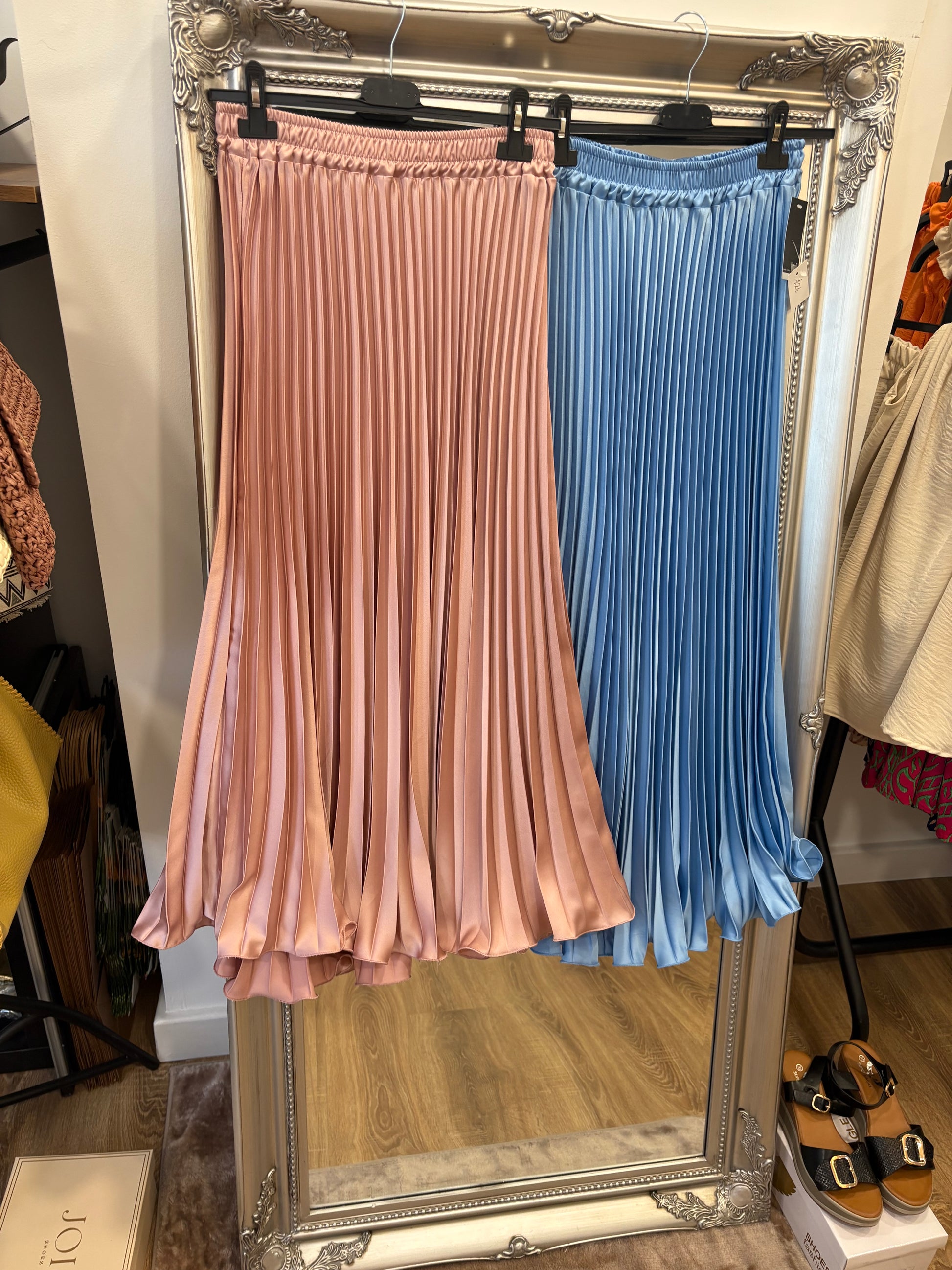 Pleated Satin Maxi Skirt