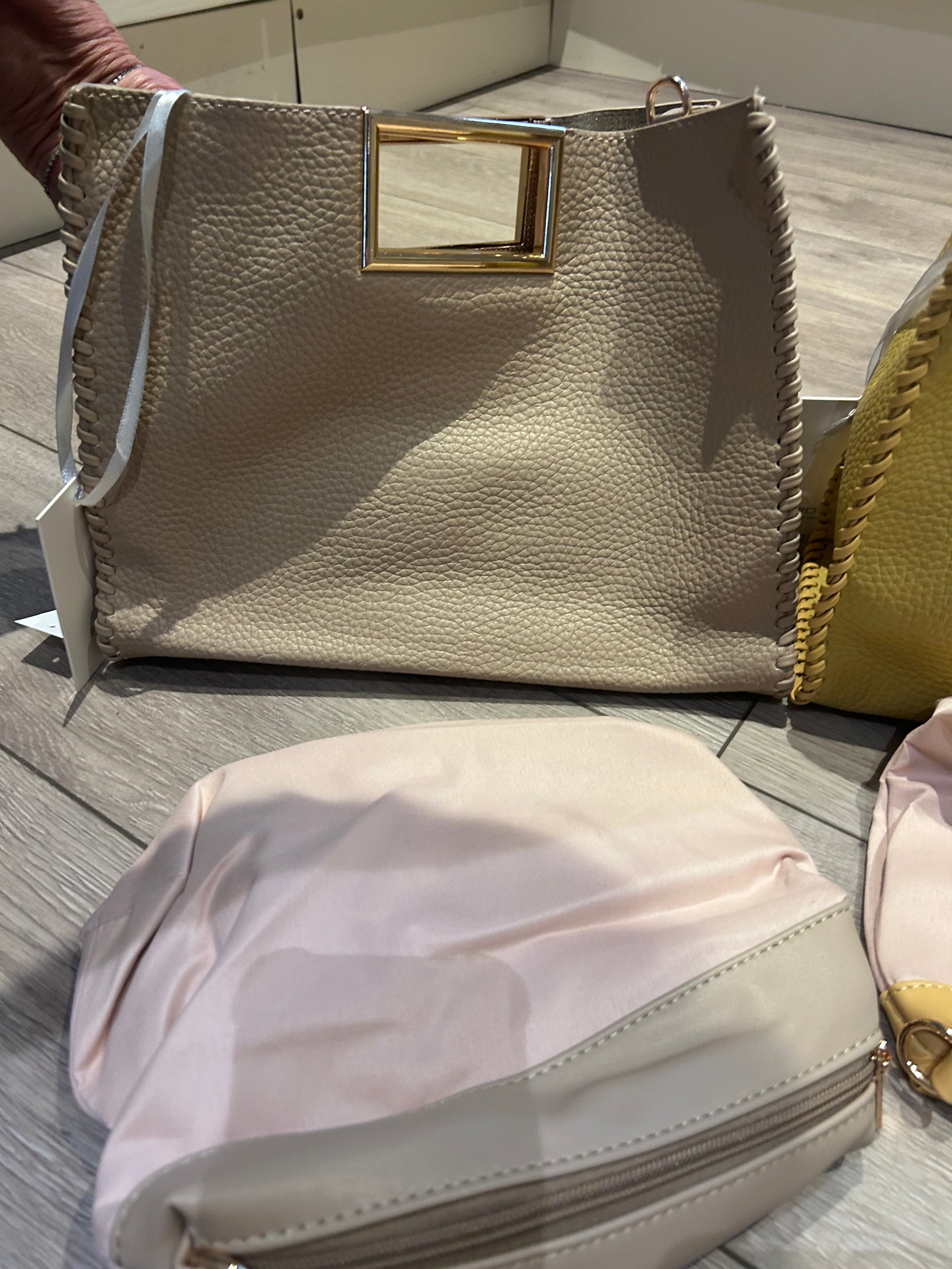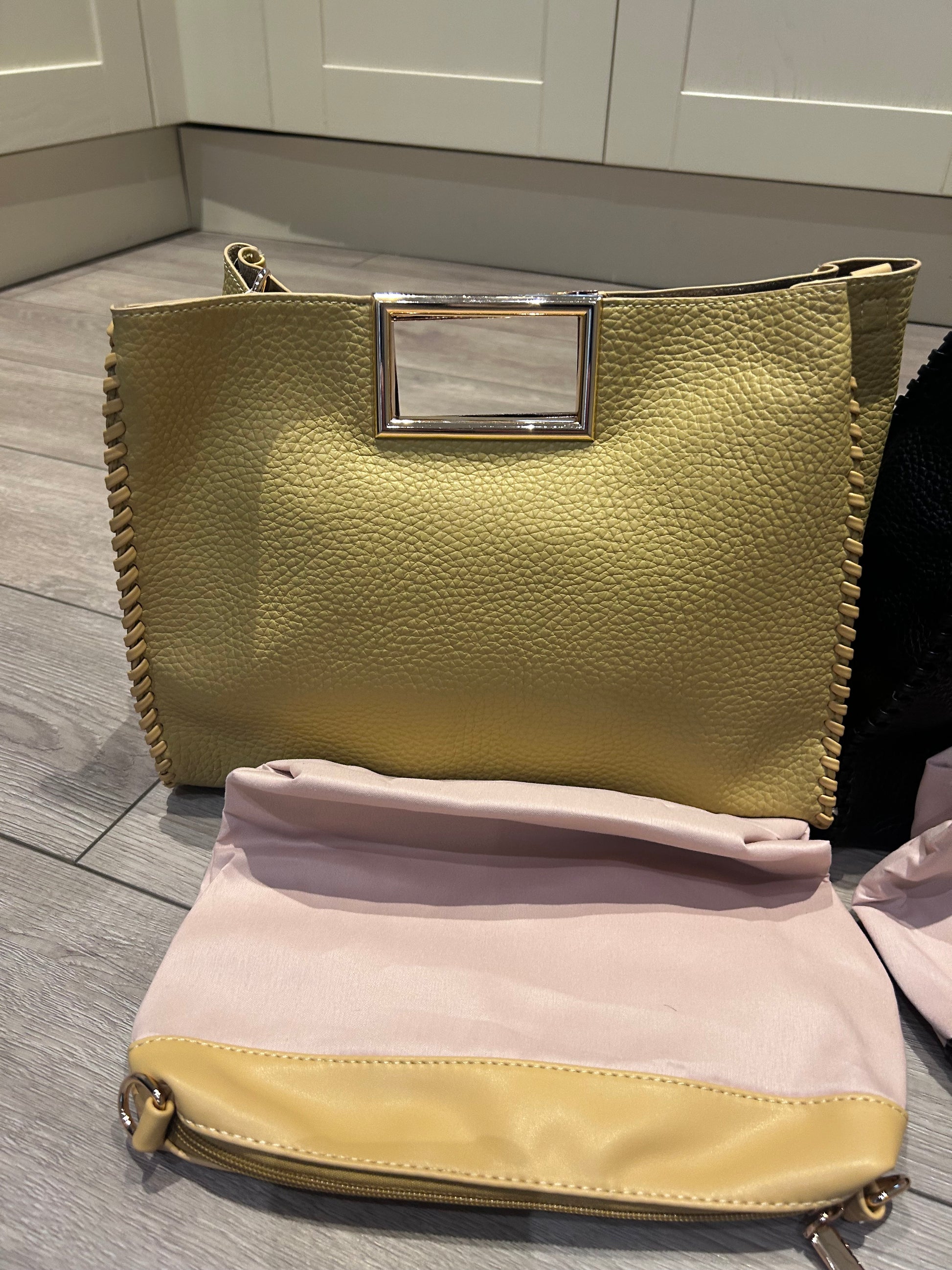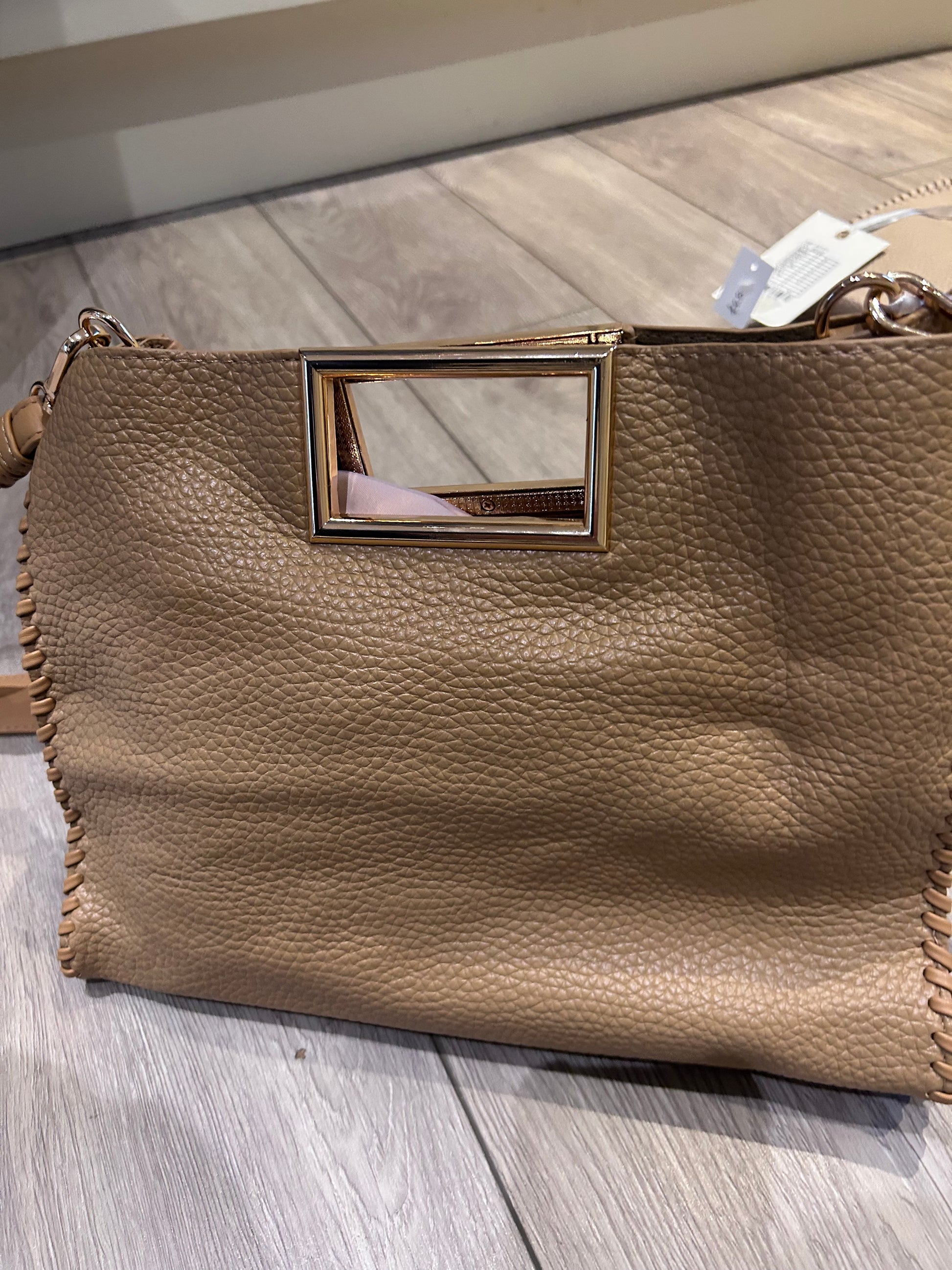 Side-stitch Large Handbag with Messenger Strap