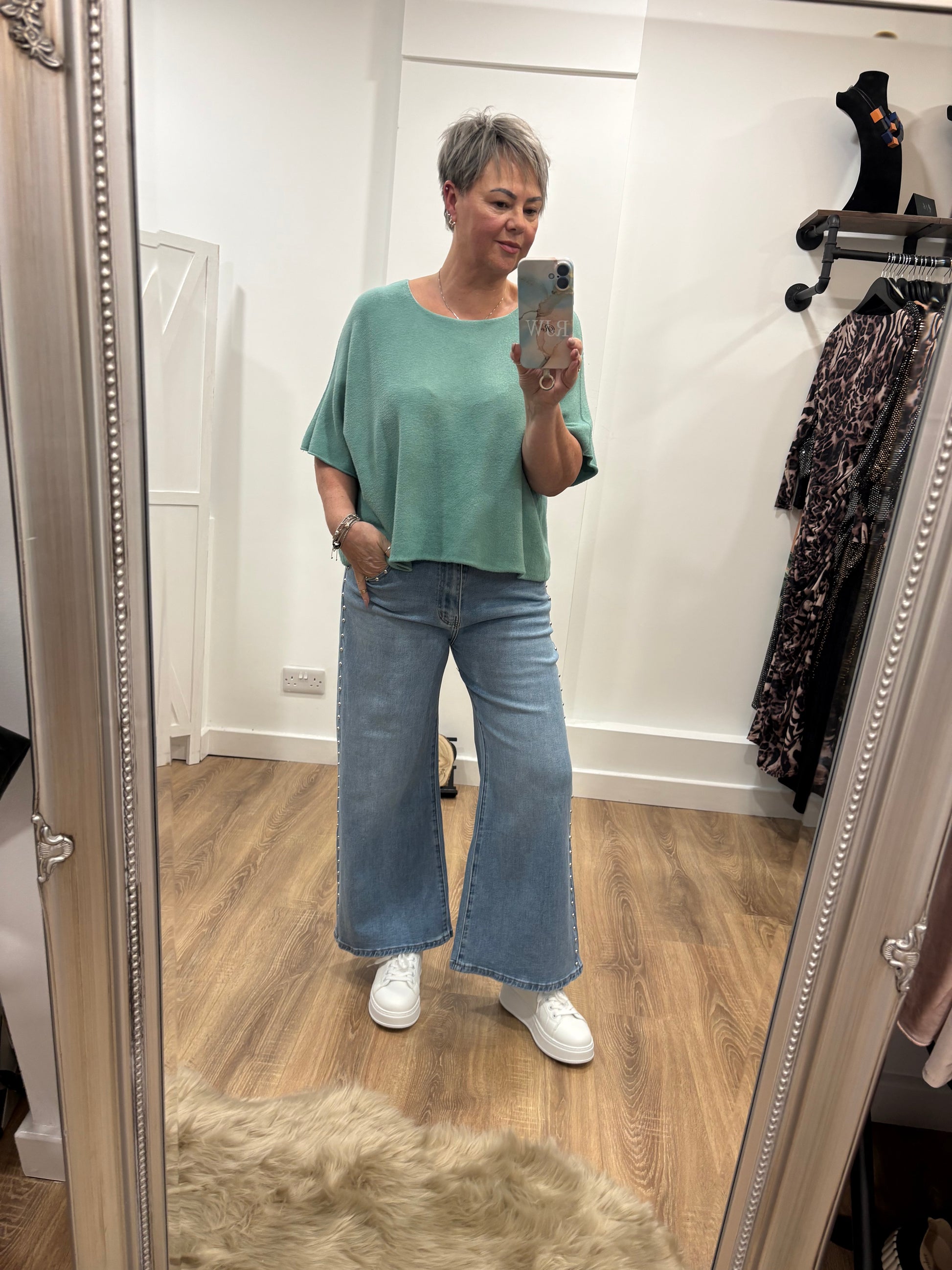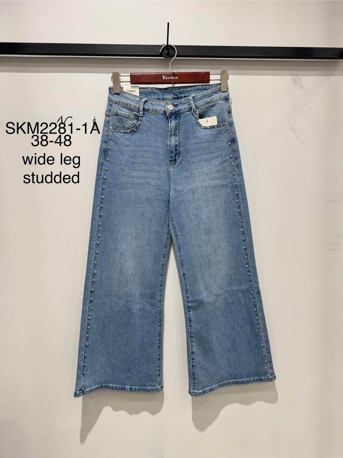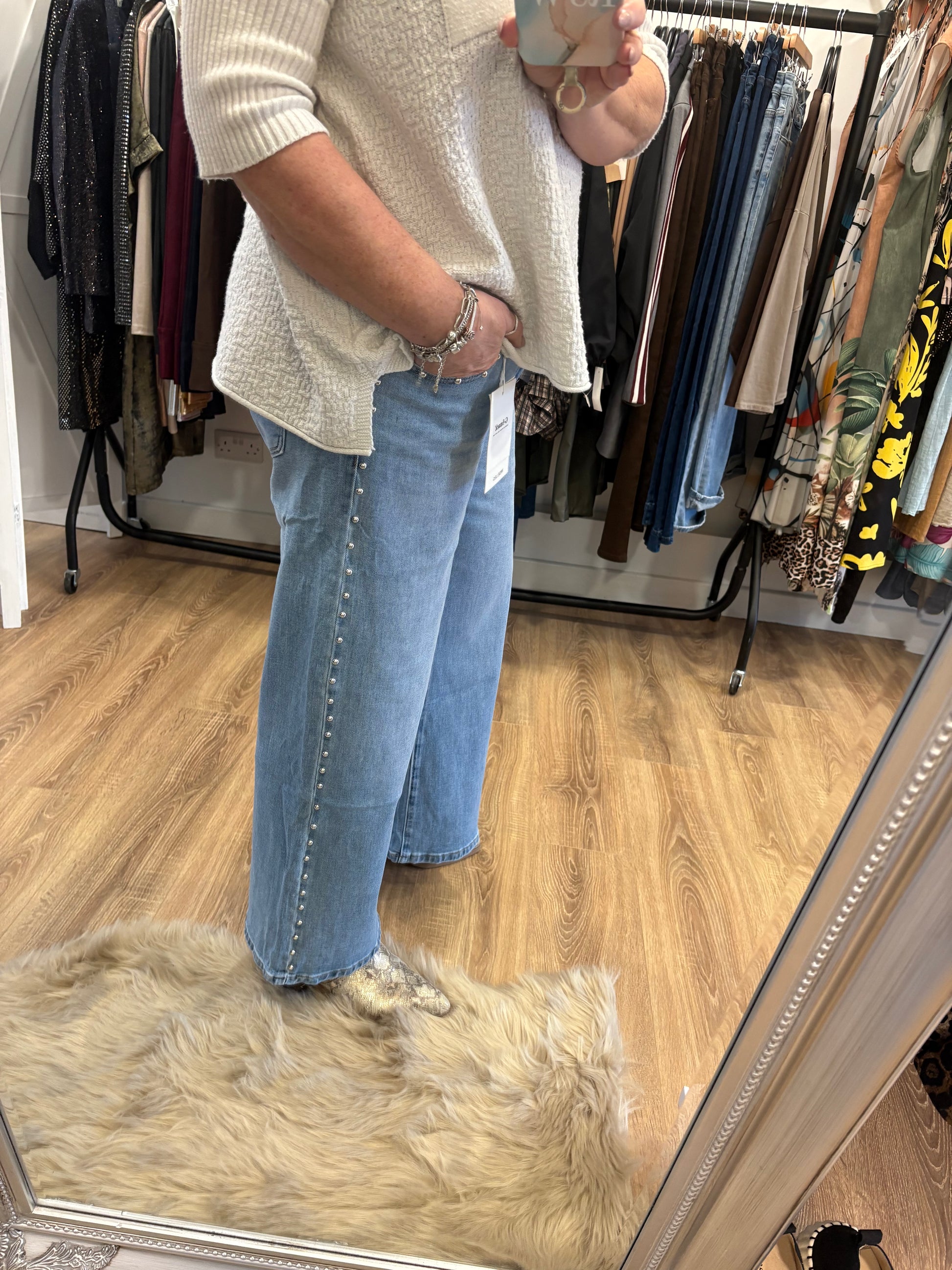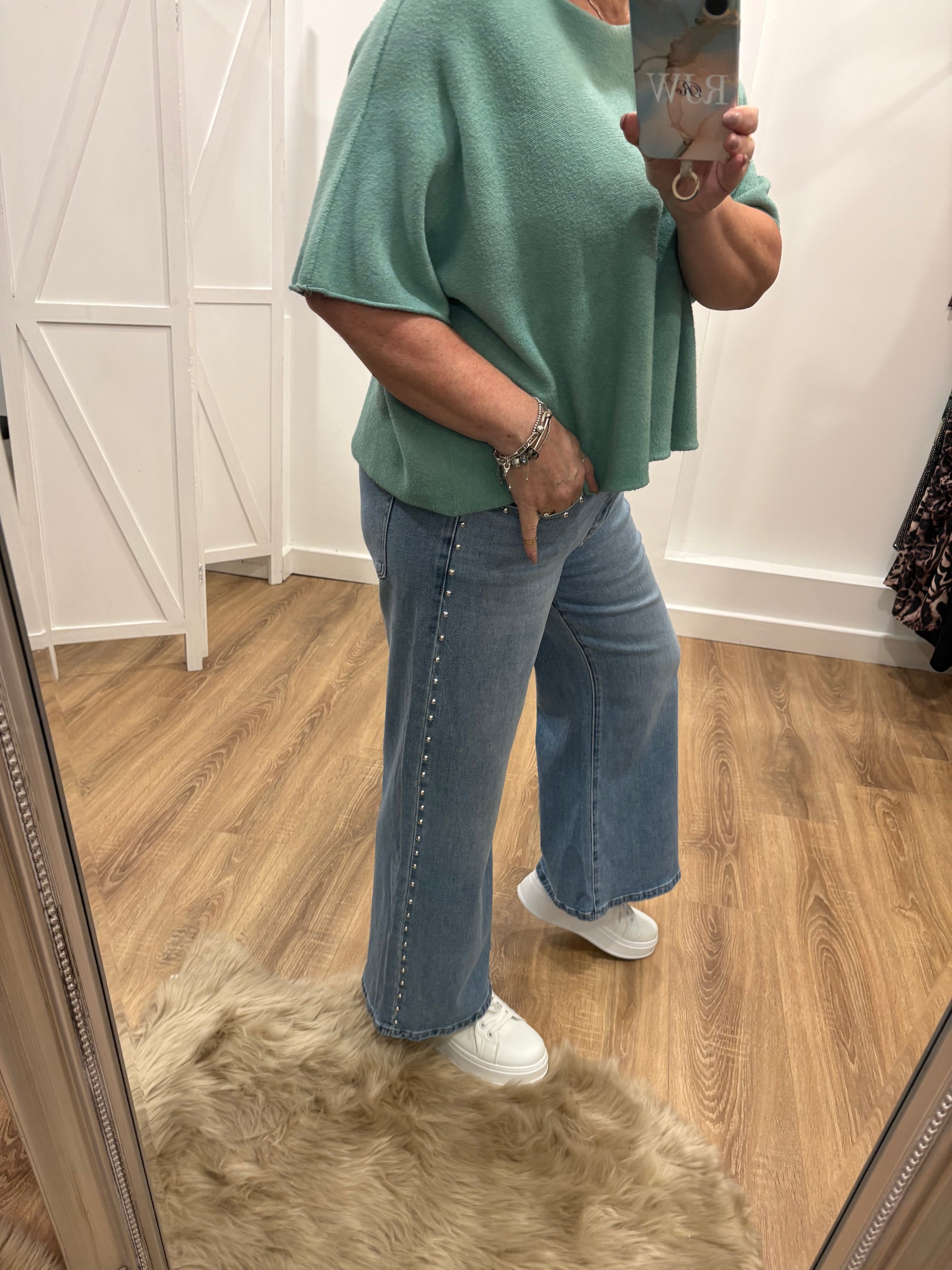 Silver Stud Detail, Wide Leg, Cropped Jeans.